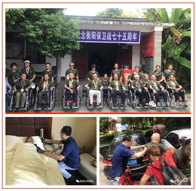 今年8月8日是衡阳保卫战75周年,我院特派出120救护车一辆,医护人员2名携带药品急救箱及各类老人常见病症的急救药品,一路陪同八名九旬参加过衡阳保卫战的抗战老兵重返抗战旧址,旨在保障老人们在衡期间健康安全的同时,表达我院对衡阳保卫战付出生命的先烈们崇高敬意。